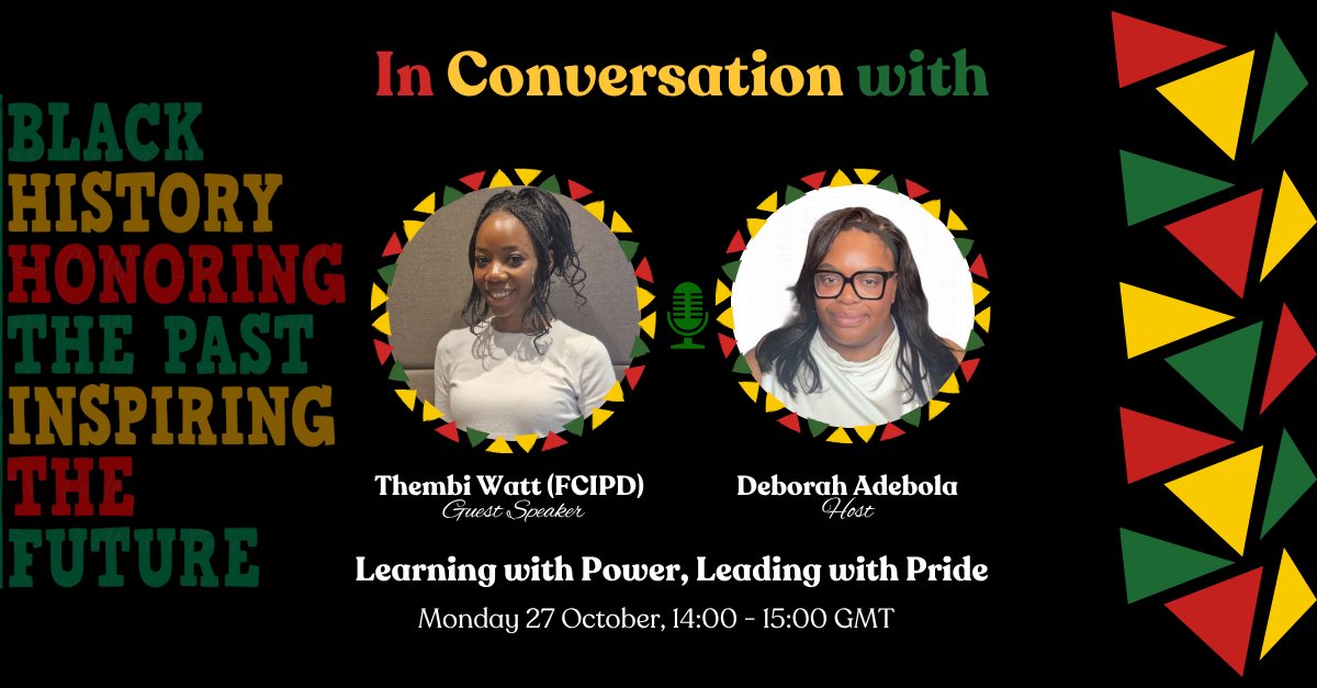 In this spirit, join us on 27th October 2025, from 14:00 to 15:00 GMT, as Deborah Adebola meets Thembi Watt (FCIPD) — an HR and organisational development leader with extensive experience in the public sector. Thembi brings a thoughtful perspective on leadership, inclusion and learning, themes she regularly explores as co-host of The How to Learn Podcast with Jonathan Marshall. Together, they reflect on how learning happens in real life and how understanding that process can transform both individuals and organisations.